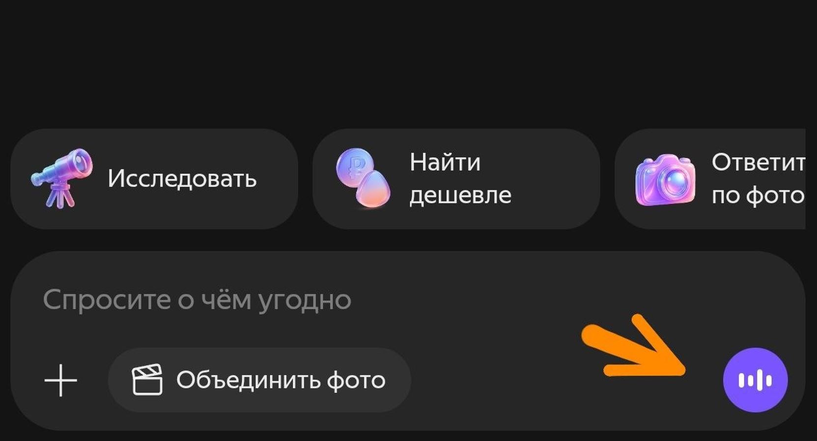 Самое заметное обновление — голосовой ввод запросов в чате. Раньше Алиса AI работала только с текстом: пиши руками или копируй откуда-то. Теперь в строке ввода появился значок микрофона, нажимаешь и просто наговариваешь свой запрос.