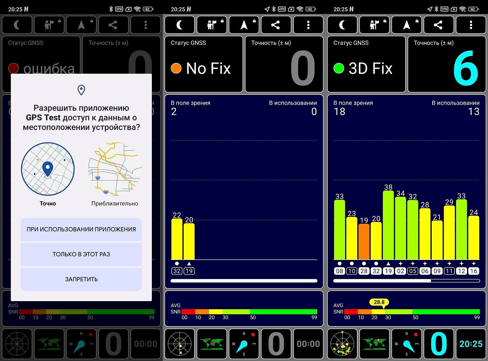 Прежде чем калибровать, стоит понять масштаб проблемы. Я пользуюсь приложением GPS Test — оно бесплатное, показывает, сколько спутников видит телефон, насколько точно их определяет и какова текущая погрешность в метрах.