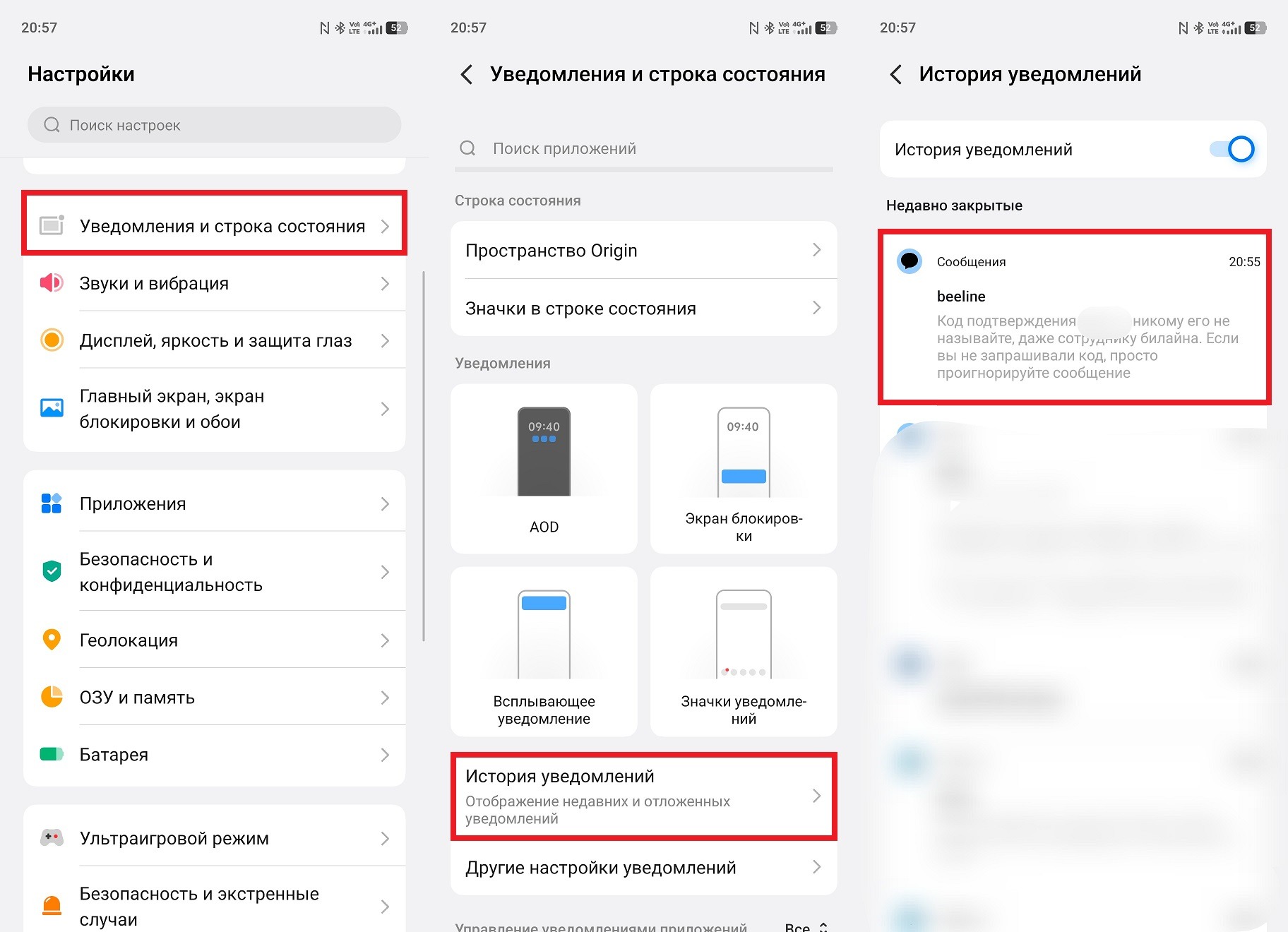 Как посмотреть сообщение через историю уведомлений
