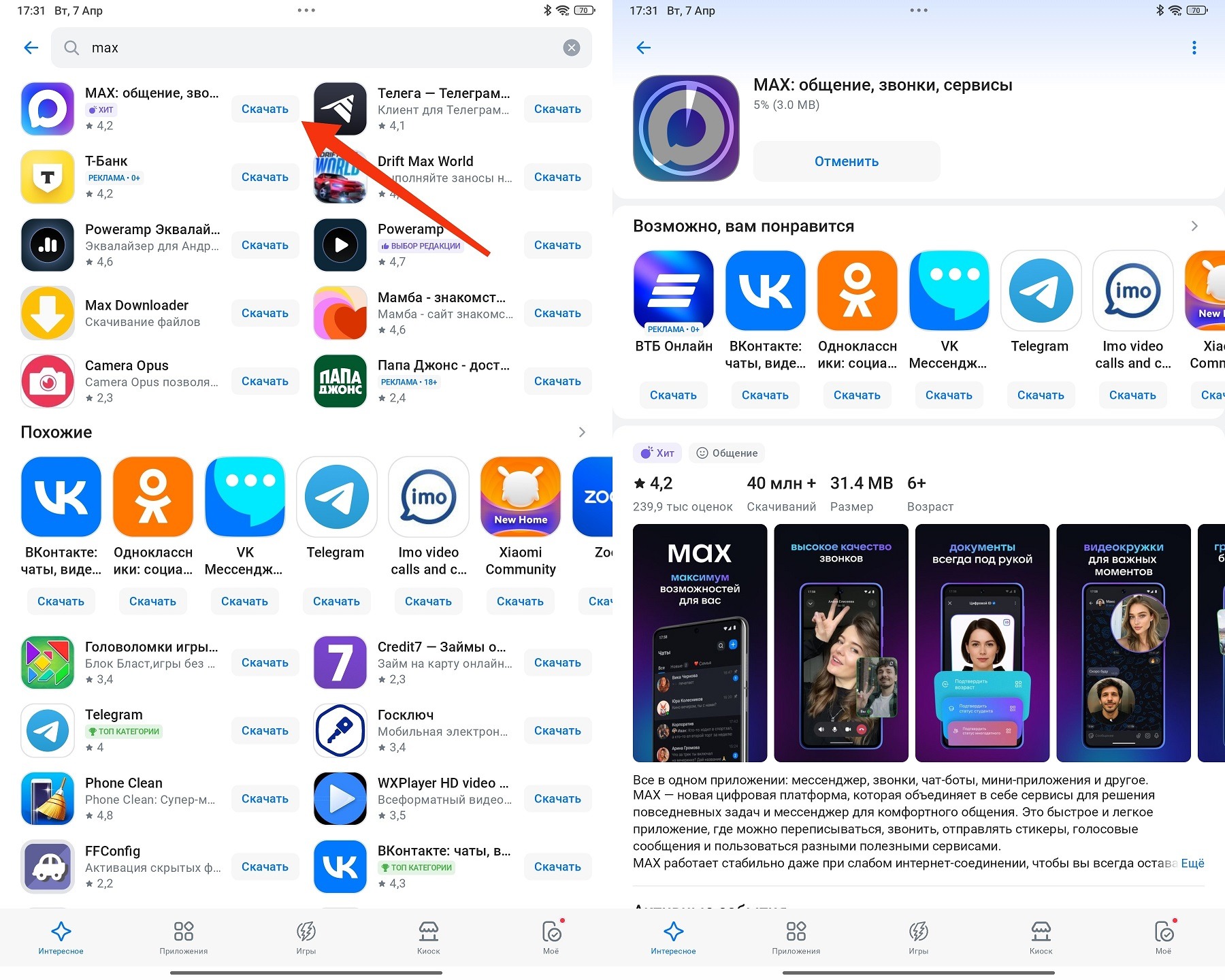 Как скачать MAX через RuStore