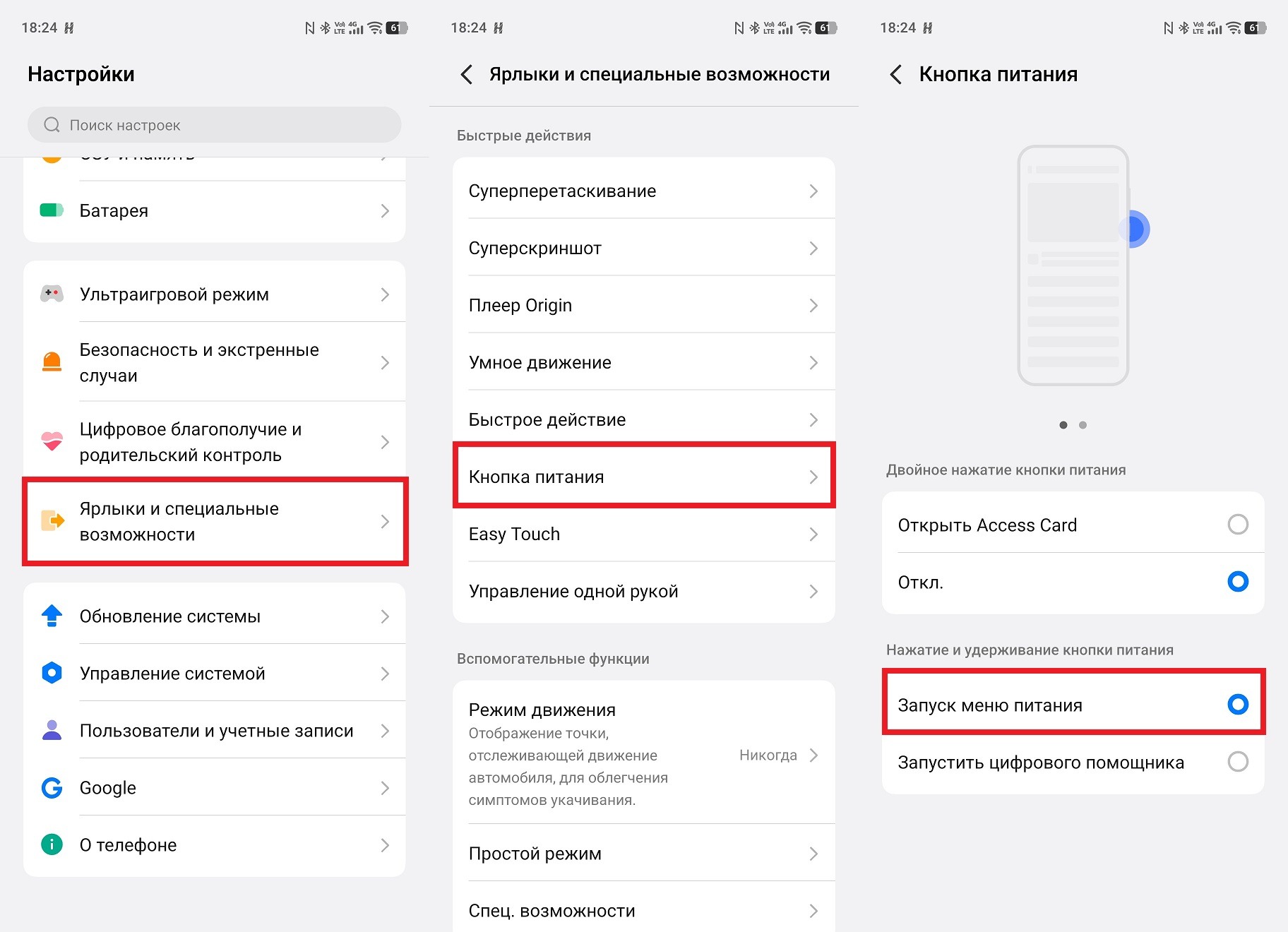 - Откройте «Настройки» — «Дополнительные функции» — «Кнопка питания».