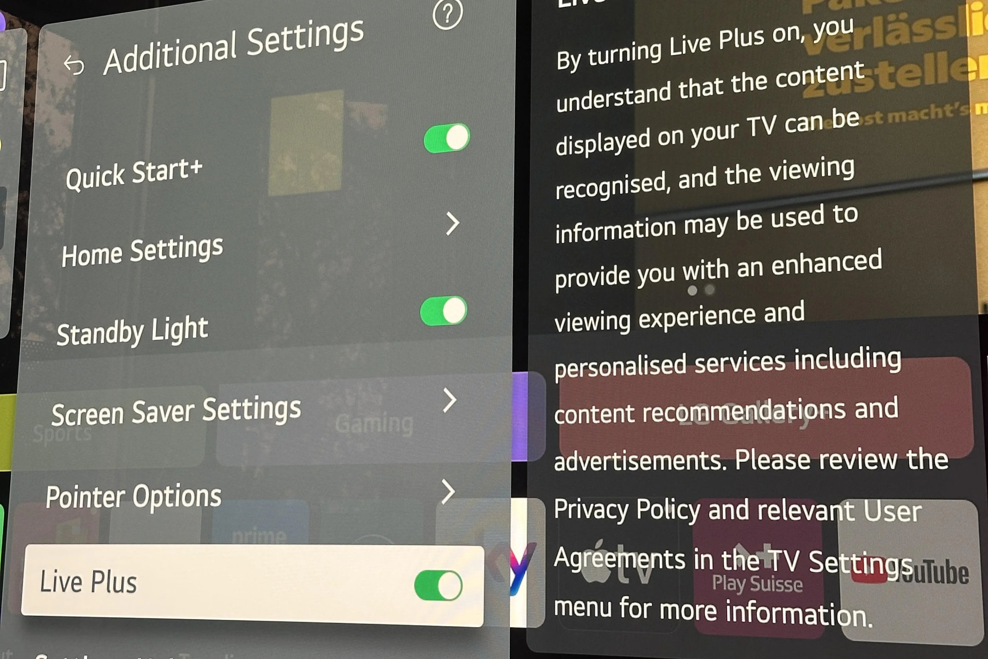 При этом весь контент, проигрываемый на вашем устройстве, по умолчанию обрабатывается LG с целью подбора персонализированных рекомендаций и рекламы.