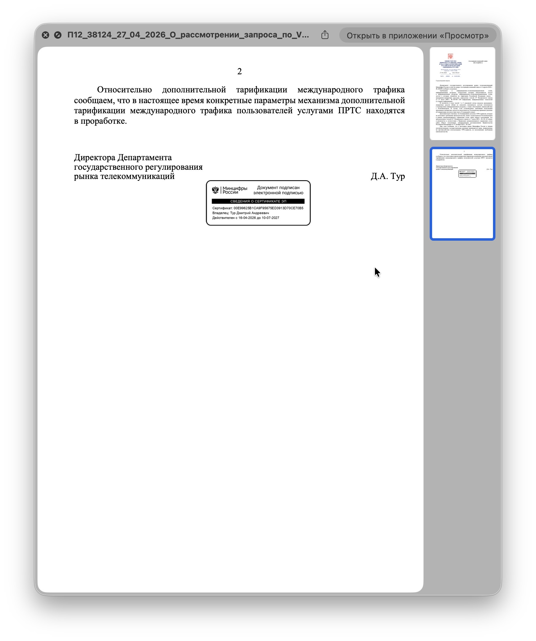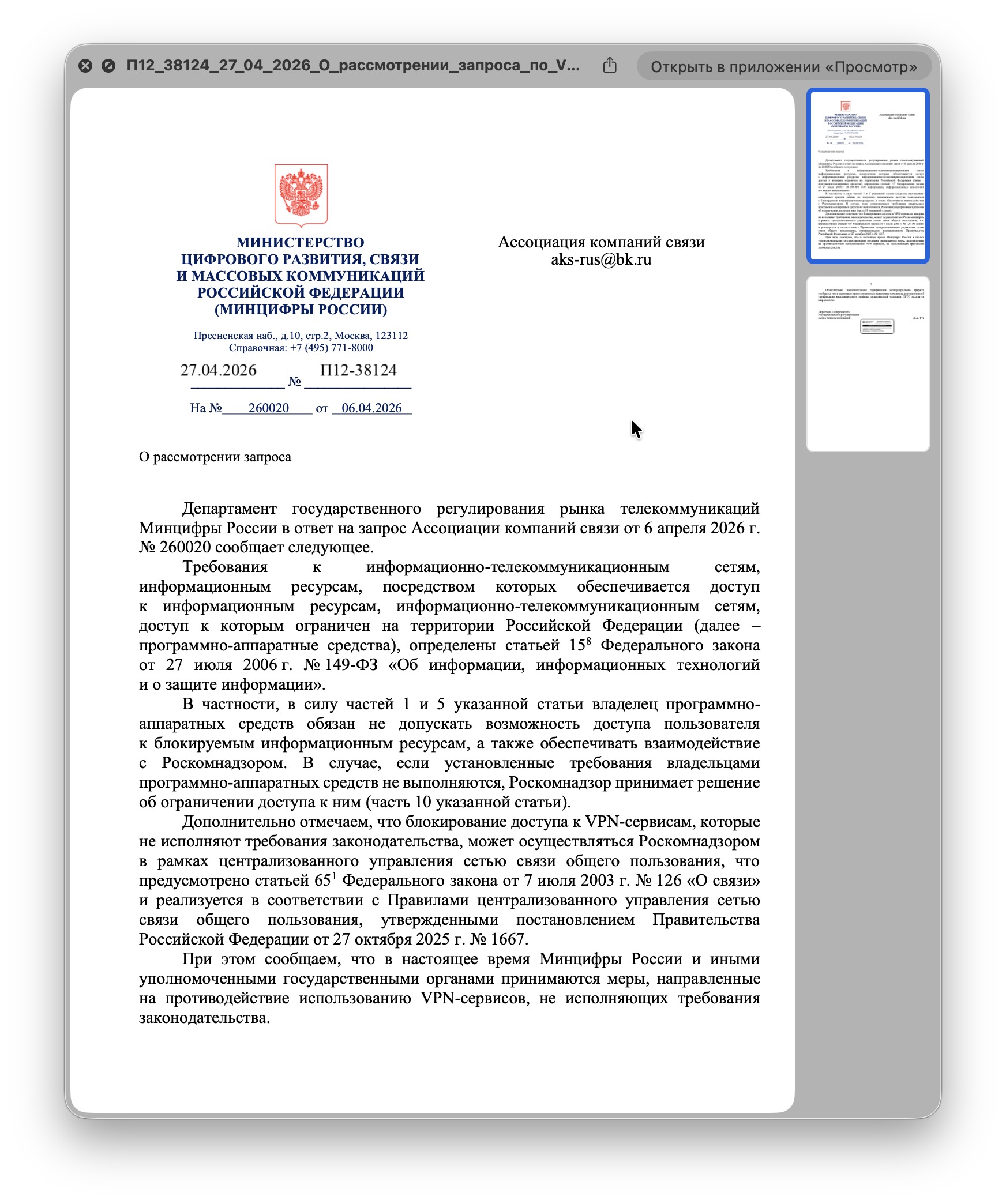 Ассоциации компаний связи получила ответ ведомства относительно слухов о 15 ГБ международного трафика для мобильного интернета и планов касательно VPN-сервисов.