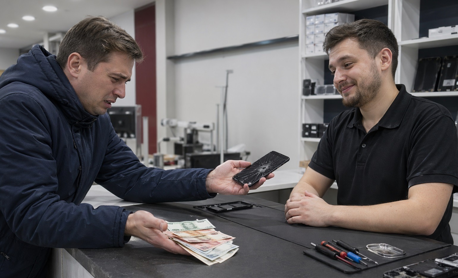 Важный нюанс по географии: цены в Москве выше региональных в среднем на 20-40%. Если замена экрана флагмана в московском сервисе обходится в 20 000 ₽, в региональном городе та же работа с теми же запчастями может стоить 13 000 — 15 000 ₽.