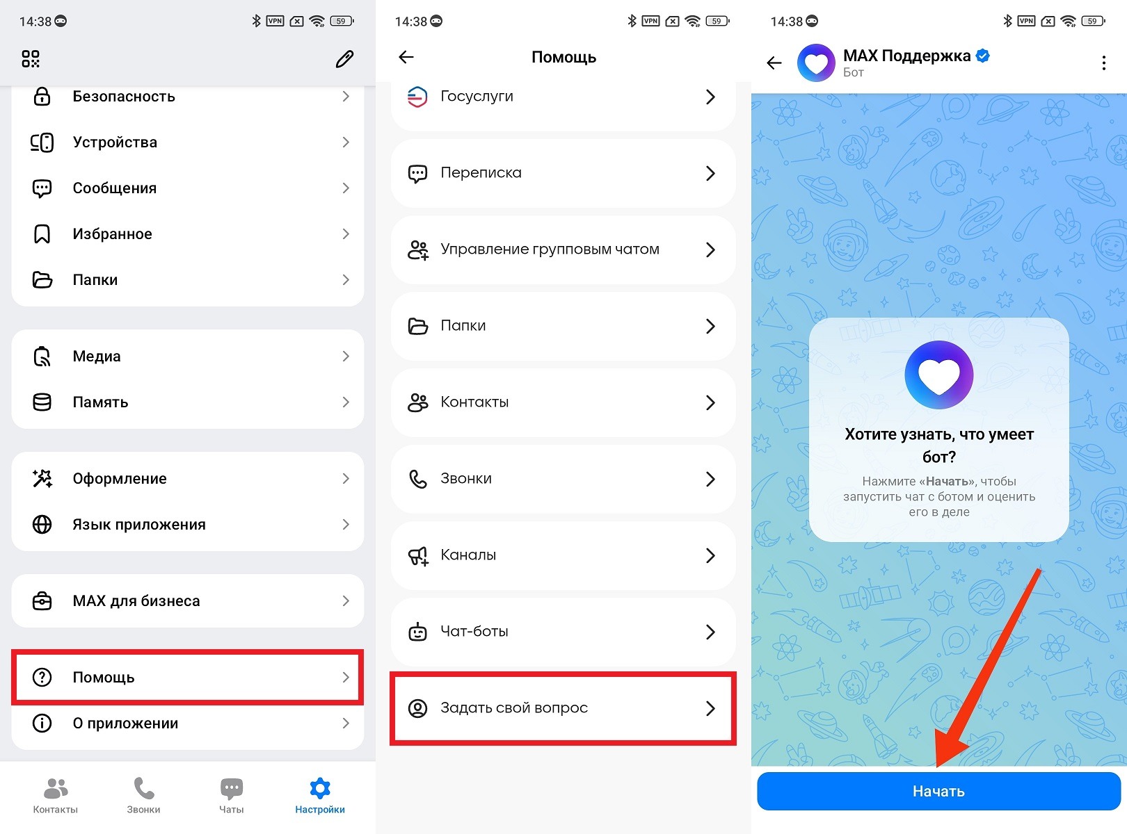 Чтобы обратиться в поддержку через настройки, действуйте так: