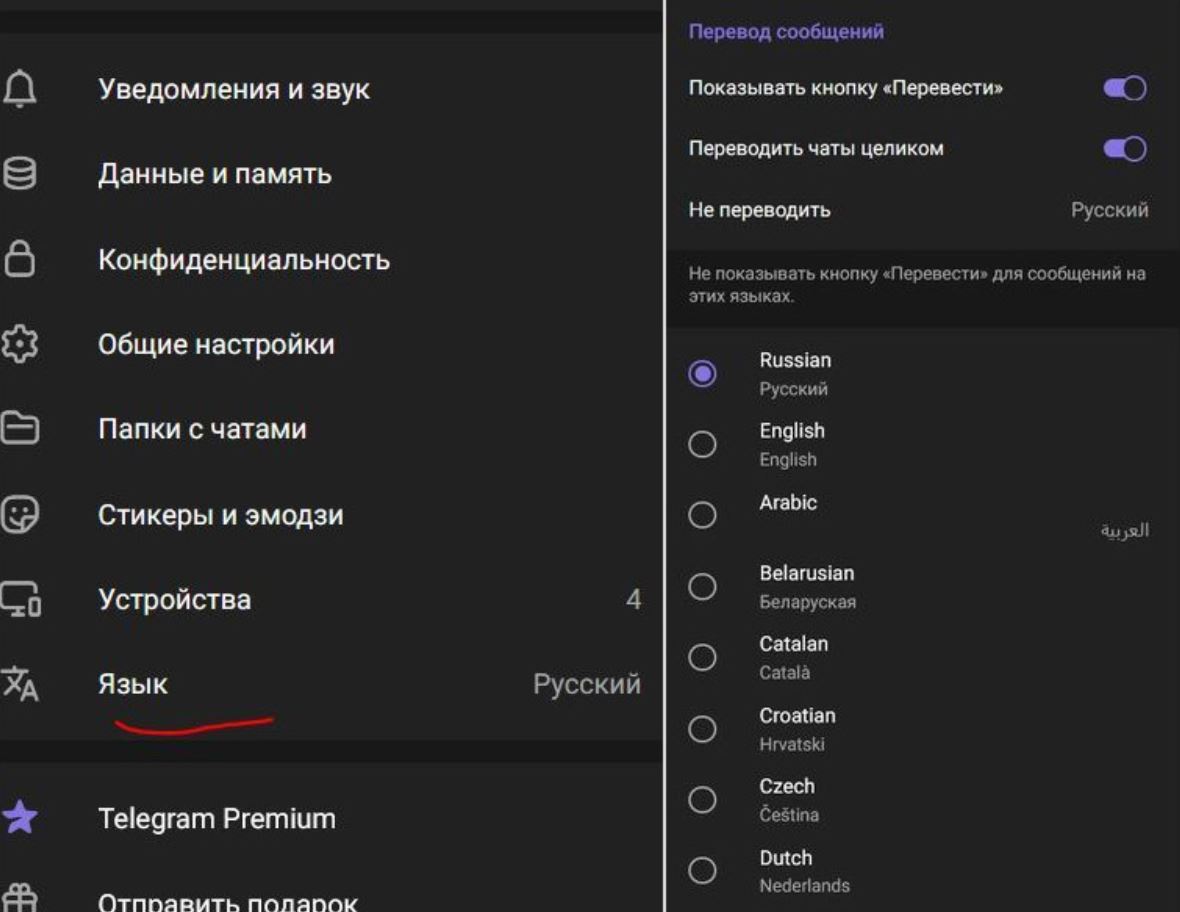 Смена языка в ТГ — дело нескольких секунд