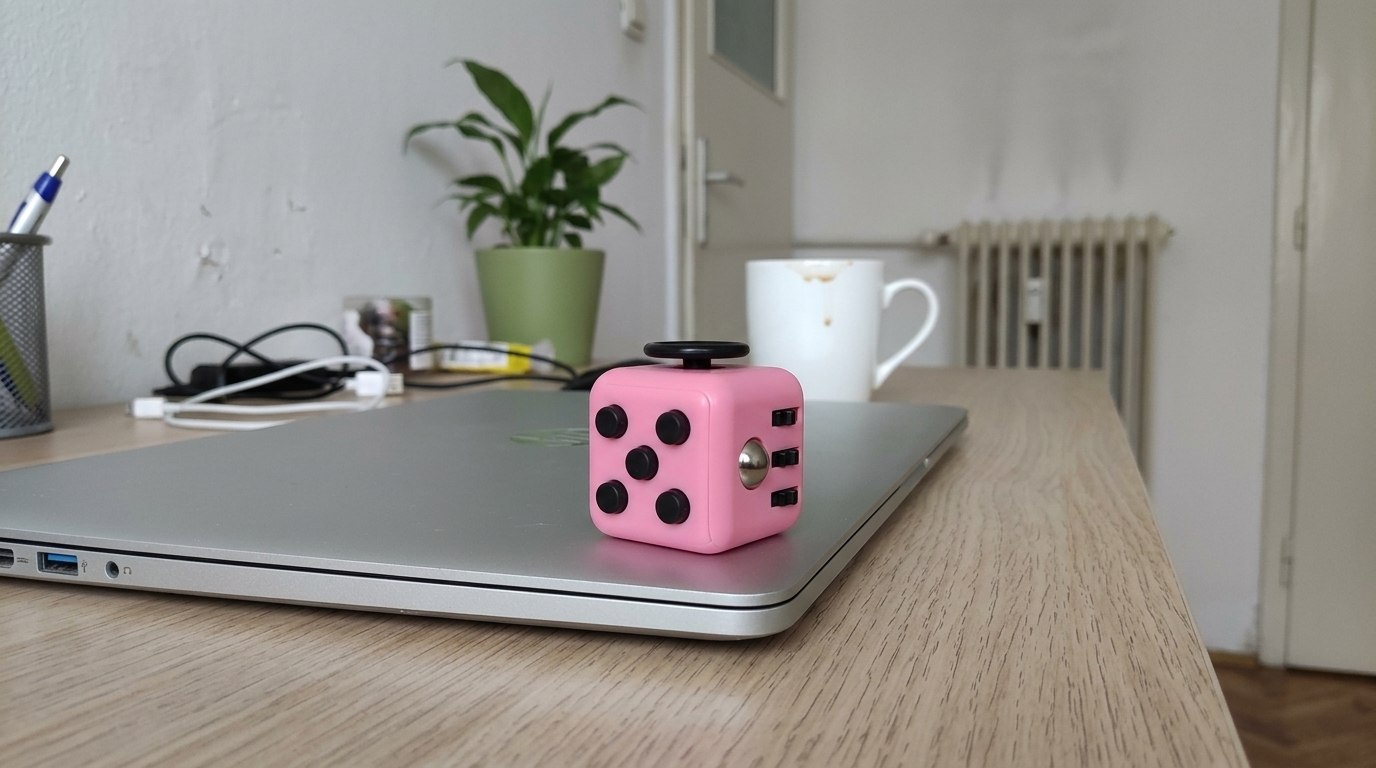 Со стрессом я решил бороться народным методом: взял фиджет с AliExpress. Это интерактивная игрушка, которую можно крутить в руках, нажимая разные кнопочки. Реально успокаивает! Жаль, что нет крепления для брелока. Так бы и на ключи повесил.