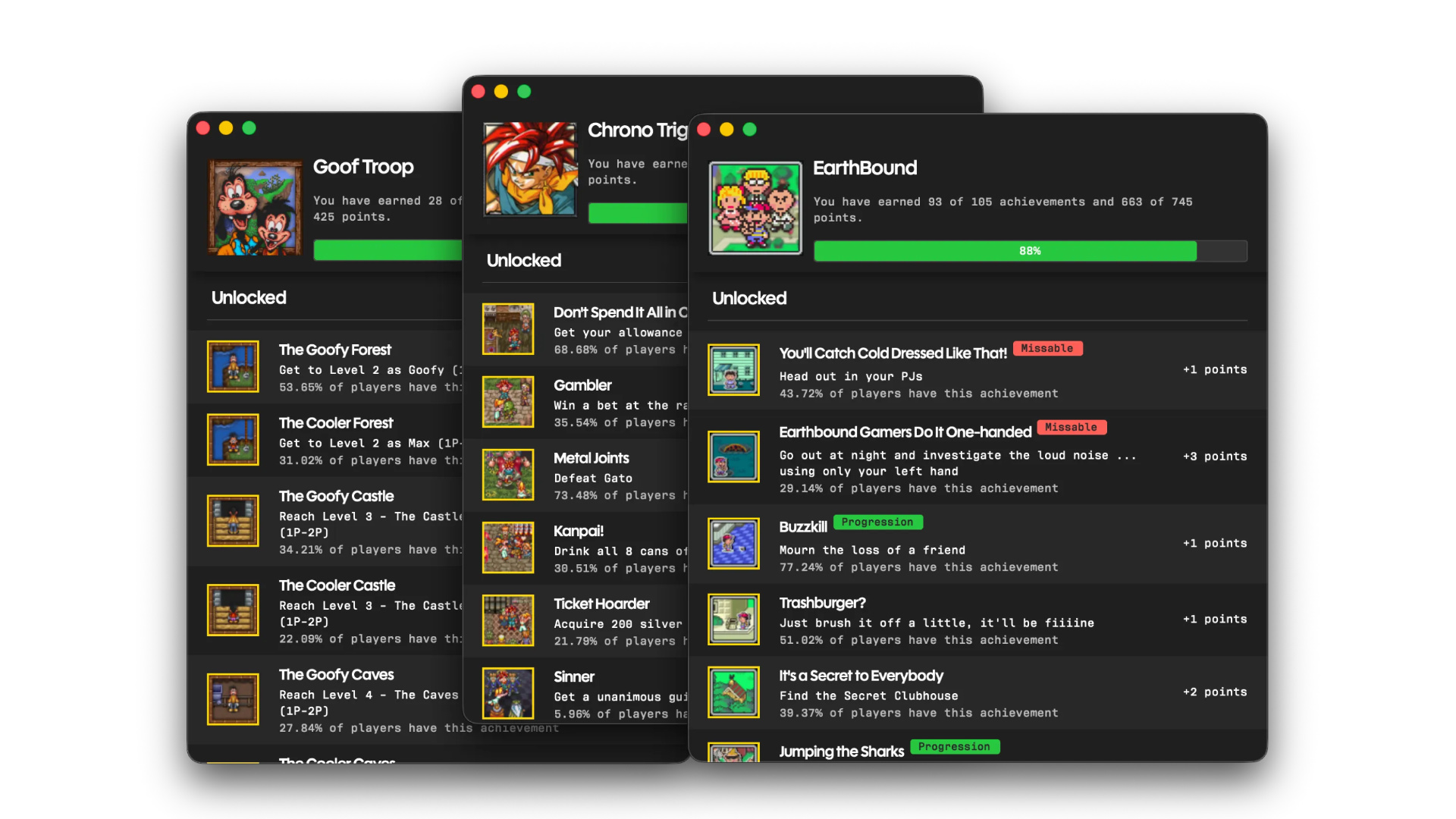 Игры заводятся через фирменное приложение Playback и поддерживают синхронизацию достижений через сервис RetroAchievement!