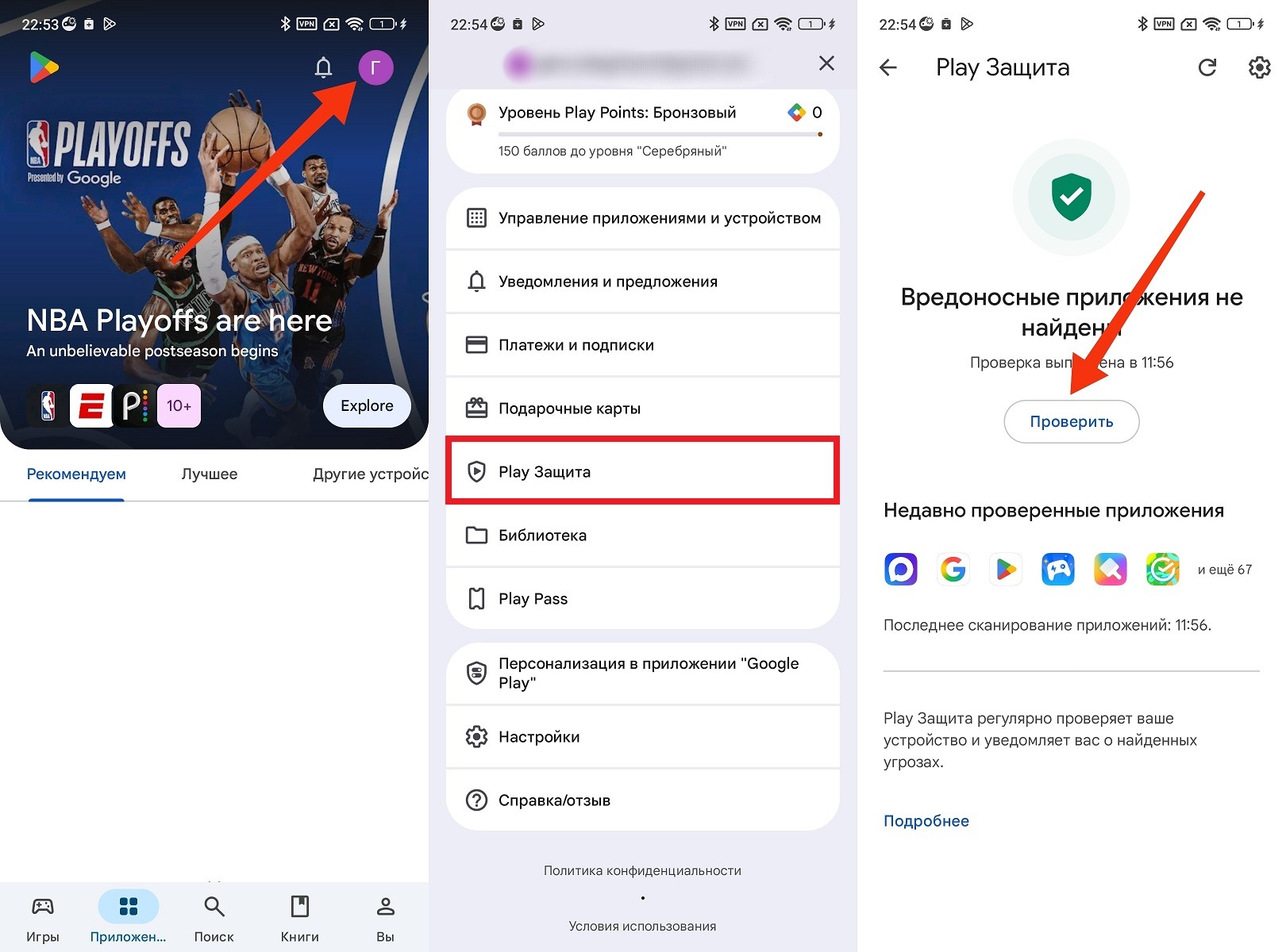 - Выберите «Play Protect» и нажмите «Проверить».