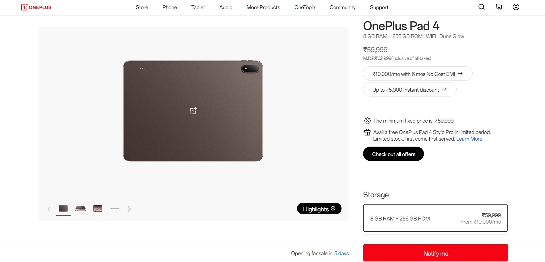 Выход OnePlus Pad 4 состоялся на рынке Индии. Планшет уже официально представлен и поступил в продажу. Цена OnePlus Pad 4 в Индии: