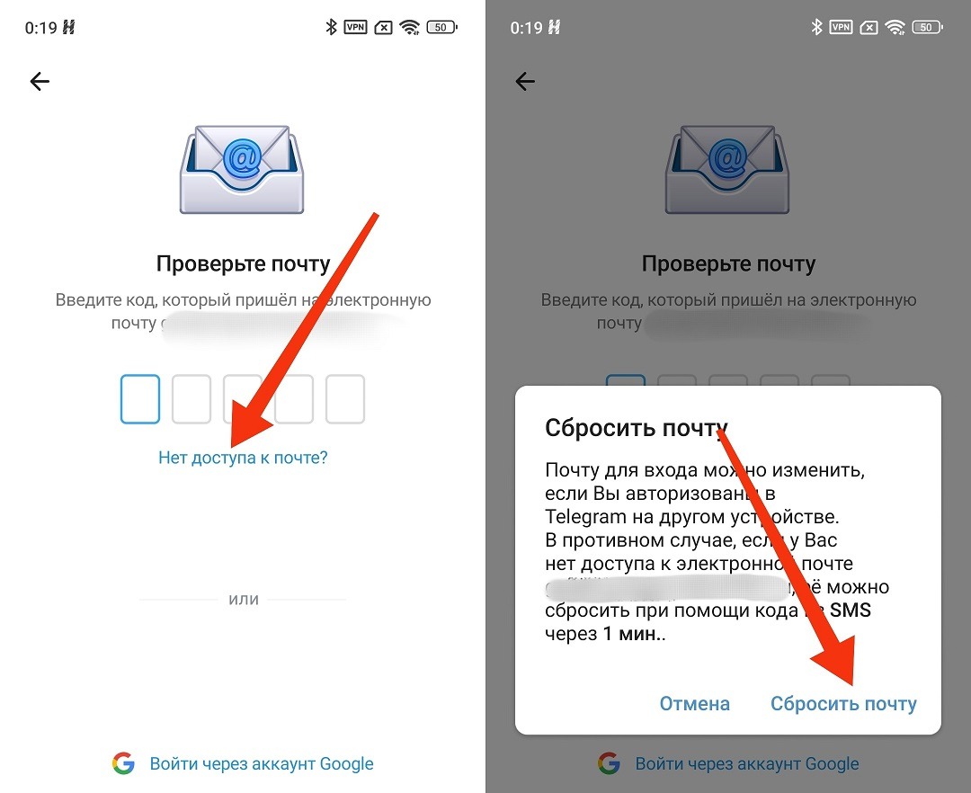 Если доступа нет, попробуйте сбросить пароль Telegram, который с недавнего времени приходит на почту: